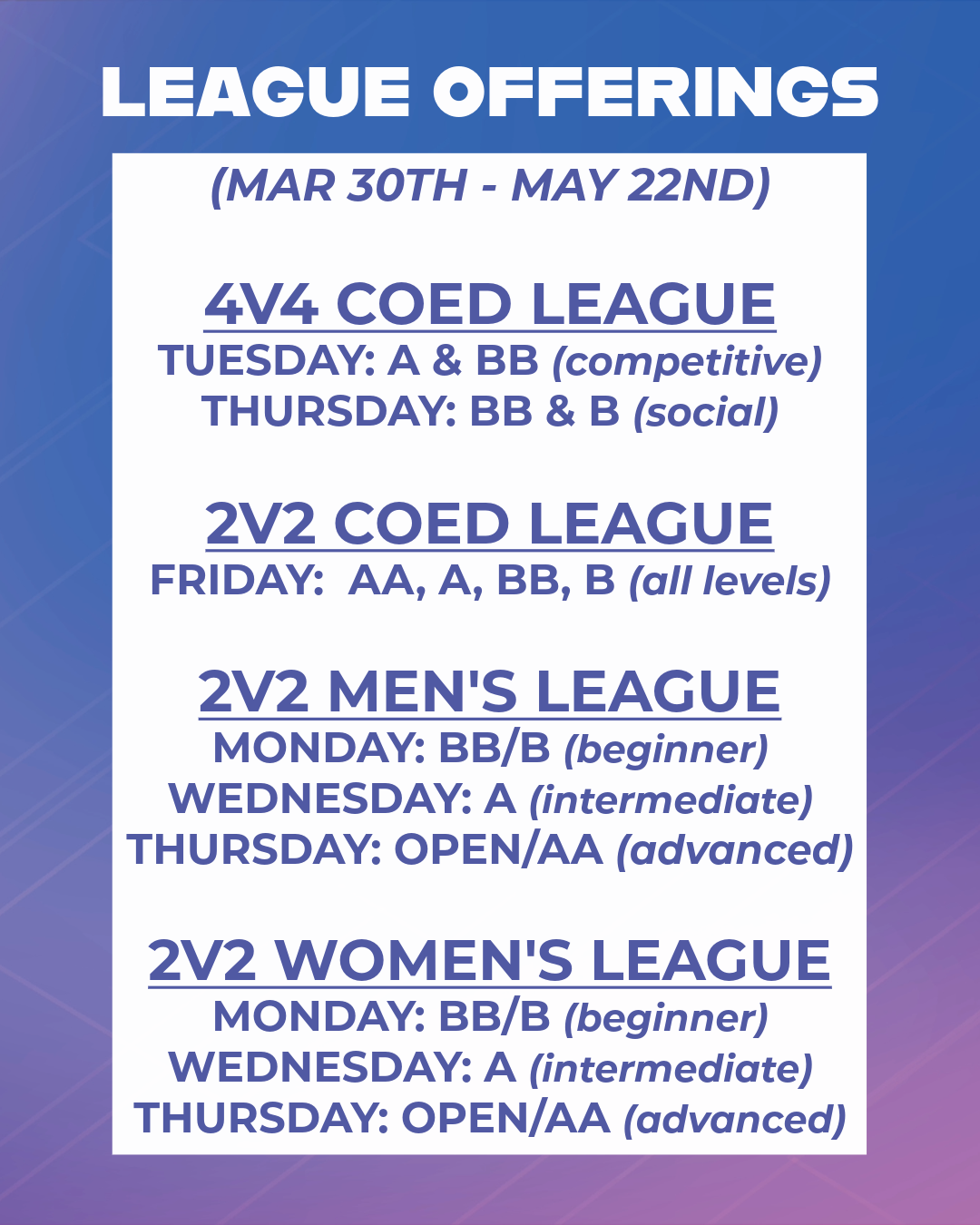 Pick your night, grab a partner, and we'll take care of the rest! Next League Starts March 30th